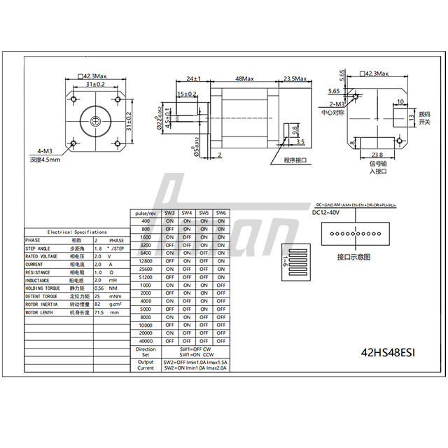 มอเตอร์สเต็ปเปอร์แบบวงปิดไฮบริด 42HS48ESI Nema 17 แรงบิด 0.56 นิวตันเมตร สำหรับหุ่นยนต์อุตสาหกรรมและเครื่องจักรสิ่งทอ
