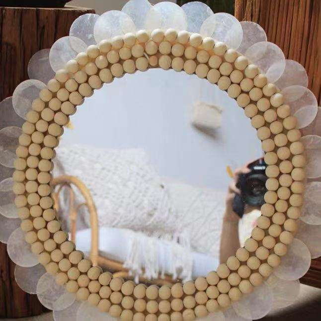 กระจกทรงกลมสำหรับแขวนผนังสไตล์42X42CM สไตล์พื้นเมืองสำหรับแขกระเบียงโซฟาหรูหรา