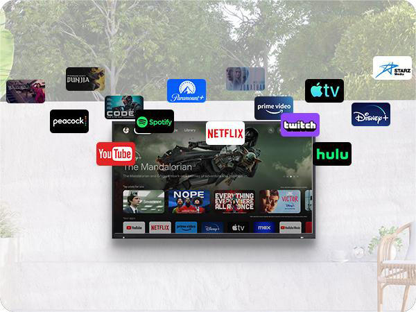 หน้าจอ Android 11 LCD 4K ขนาด43-85นิ้วทีวีกลางแจ้งกันน้ำสำหรับสวนหลังบ้านสระว่ายน้ำสระว่ายน้ำพร้อม Chromecast