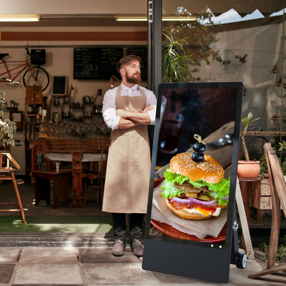 จอแสดง LCD ป้ายดิจิทัลใช้ไฟแบตเตอรี่กันน้ำกลางแจ้ง43นิ้วสำหรับ IP65กลางแจ้งจอแสดงผลโฆษณา LCD แบบพกพา