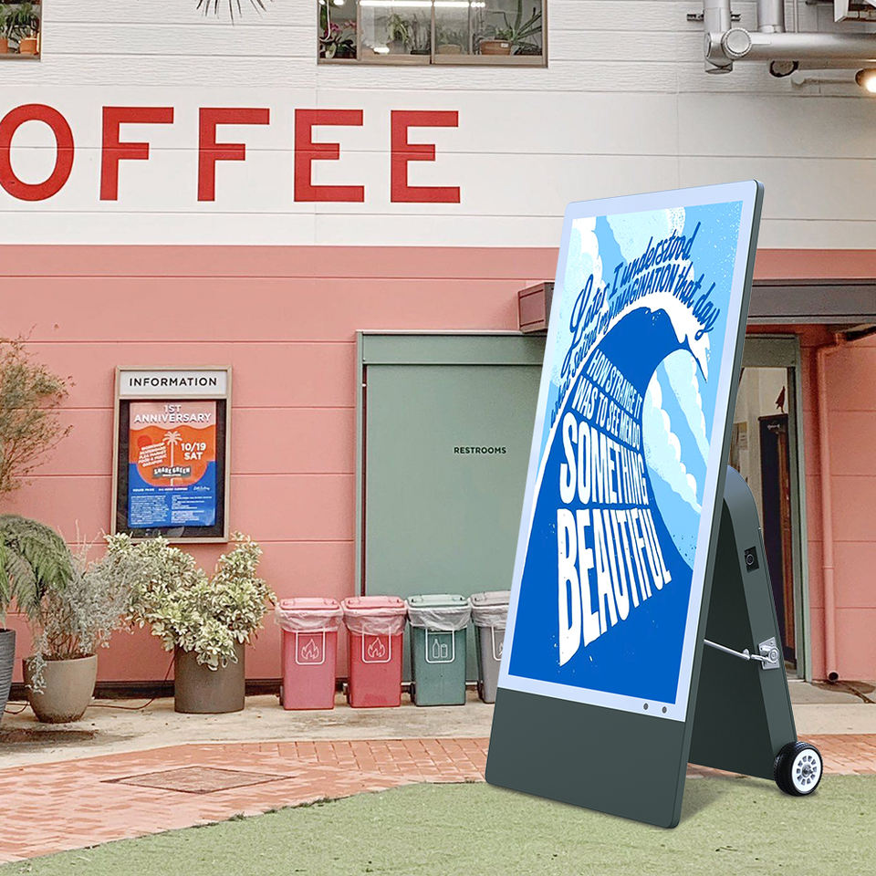 จอแสดงผลโฆษณาเคลื่อนที่กลางแจ้งขนาด 43 นิ้ว กันน้ำ มาตรฐาน IP65 ความสว่างสูง 1800 นิต รองรับ SDK แบรนด์ OEM