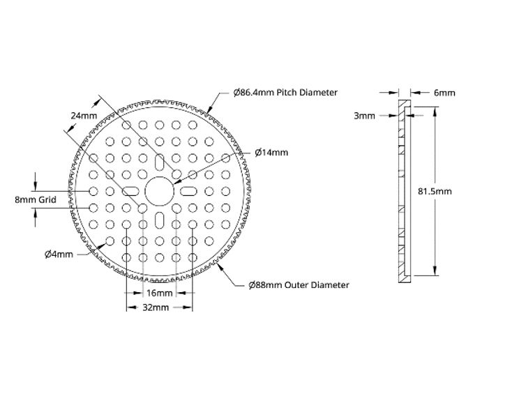 อะลูมิเนียมซีรีส์ 4302, MOD 0.8, เฟืองติดตั้งบนดุม (รูขนาด 14 มม., 108 ฟัน) สำหรับหุ่นยนต์ STEM REV WCP FTC FRC