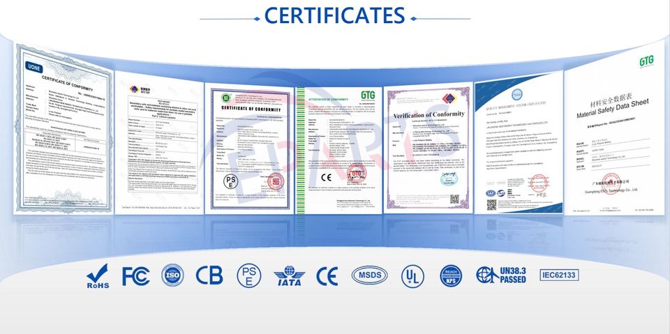 ใบรับรอง:CE,FCC, ROHS, PSE,KC, Tis, msds, UN38.3ฯลฯ