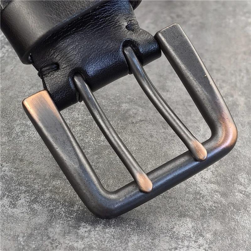 เข็มขัดหัวเข็มขัดโลหะหมุดคู่กว้าง43มม. หนังแท้หรูหราเข็มขัดหนังแท้สำหรับผู้ชายใหม่