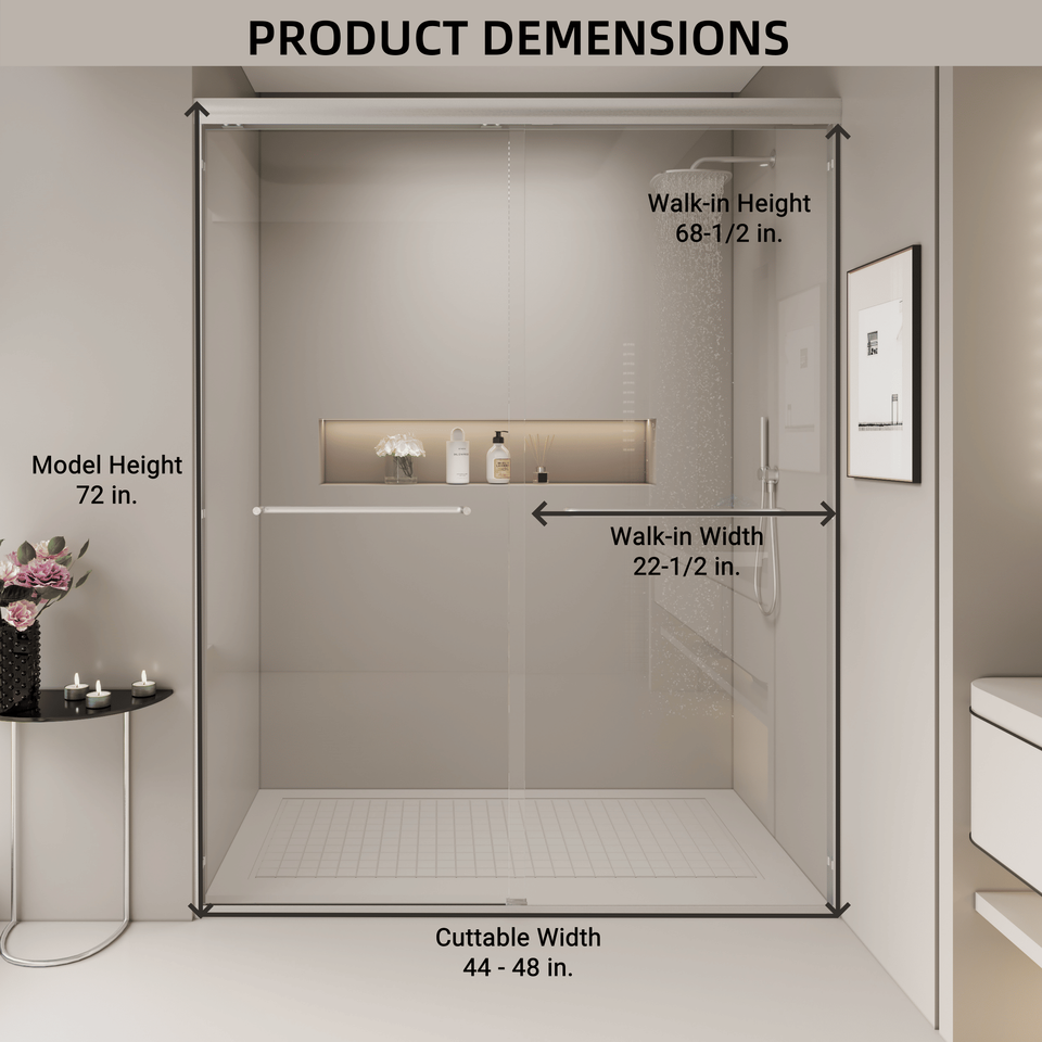 44-48 In. W X 72 In. H Double Sliding Semi-Frameless Shower Door 1/4\" Tempered Glass Brushed Nickel Walk-in 24D03-48BNX Door