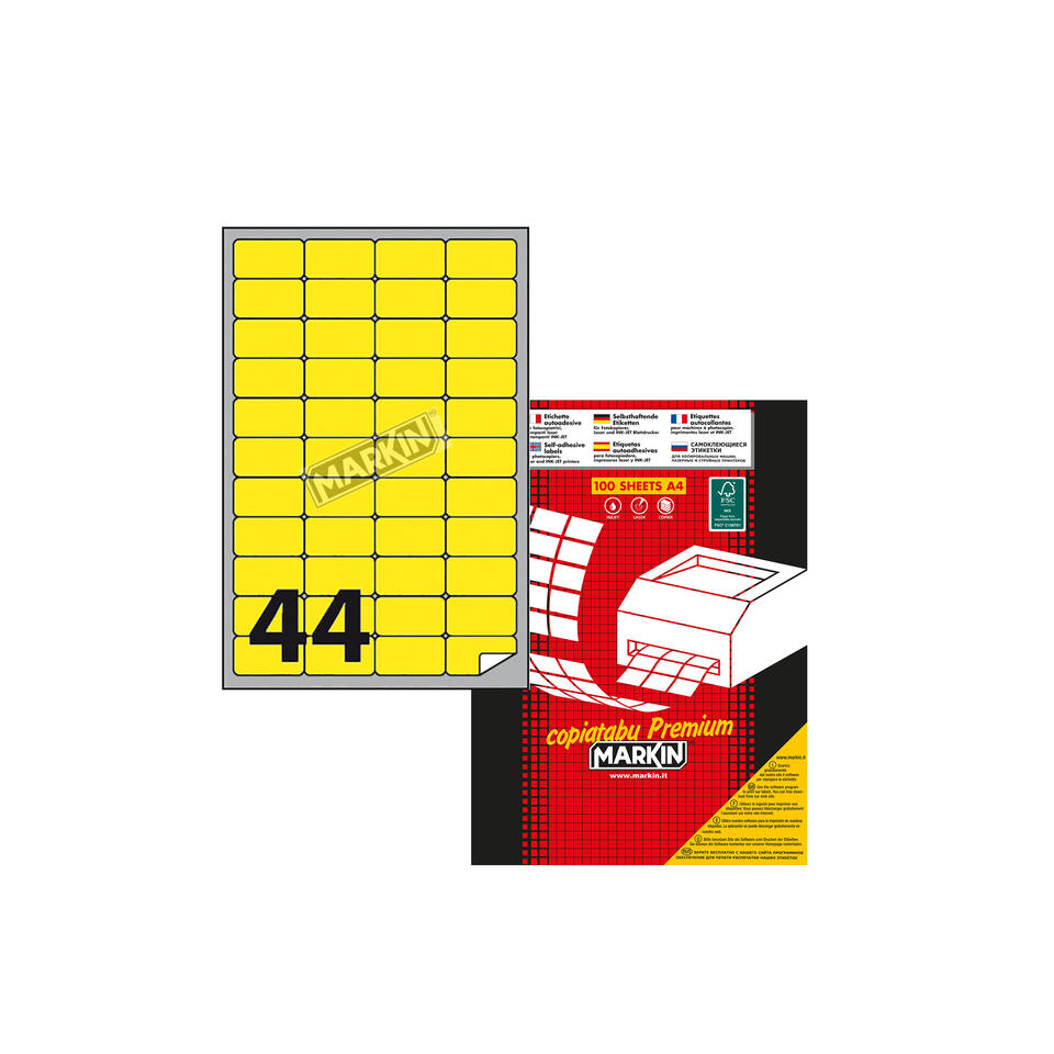 yellow fluo paper, permanent adhesive labels, master of 10 boxes, box of 100 sheetsลักษณะ