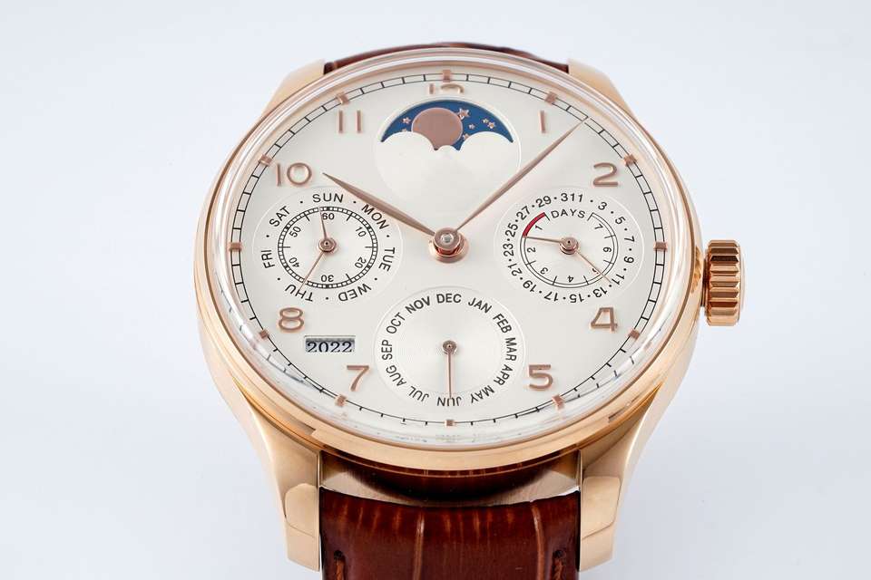 นาฬิกา52610กลไกสแตนเลส44มม. สีโรสโกลด์ข้างแรมตามปฏิทินนักประดาน้ำนาฬิกาสปอร์ต20มม.