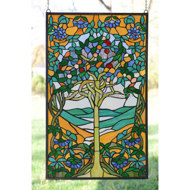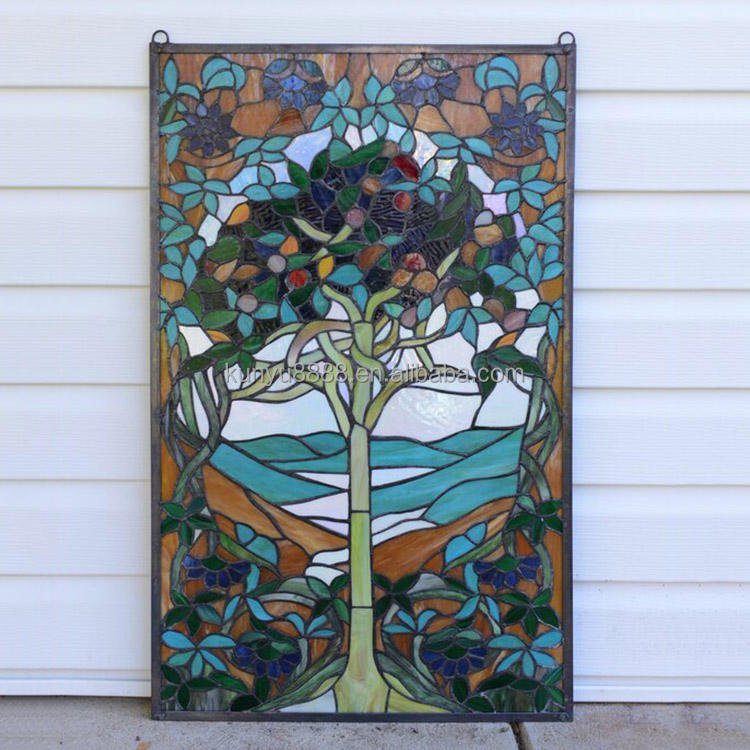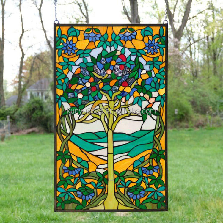 กระจกสีทิฟฟานี่ลายต้นไม้ หนา 5 มม. สำหรับตกแต่งหน้าต่าง โรงแรม ห้องอาหาร ประตู รับสั่งทำขายส่ง