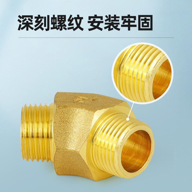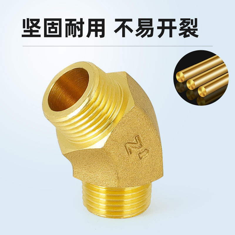45-Degree Elbow All-Copper Thickened 3/4 Inch Water Pipe Fittings Double Internal Thread Double External Thread for Copper Pipes