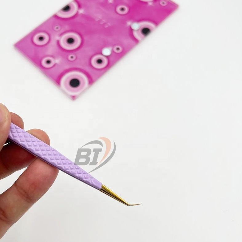 แหนบต่อขนตาบางยาว45องศาแหนบต่อขนตาเหล็กแบบยั่งยืนแหนบต่อขนตาอะคริลิกกระเบื้องสีม่วง