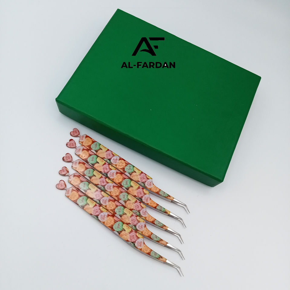 Custom Label 45 Degree Paper-Coated Eyelash Extension Tweezers Stainless Steel Heart Design Fiber Tip Pointed for Lash Volume