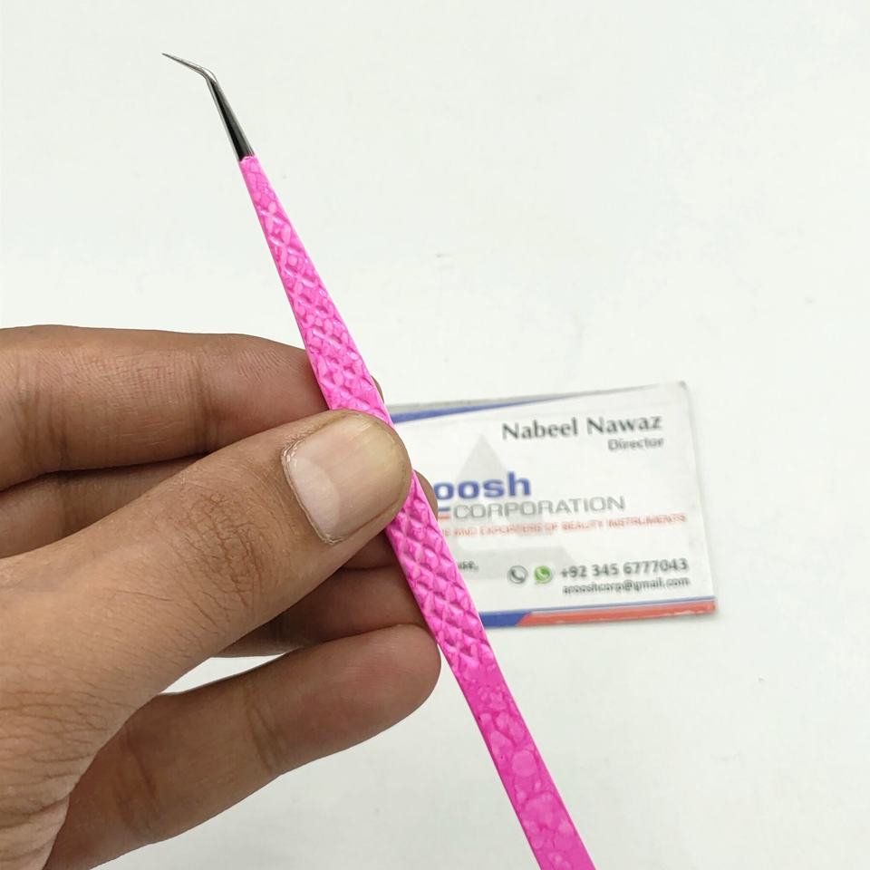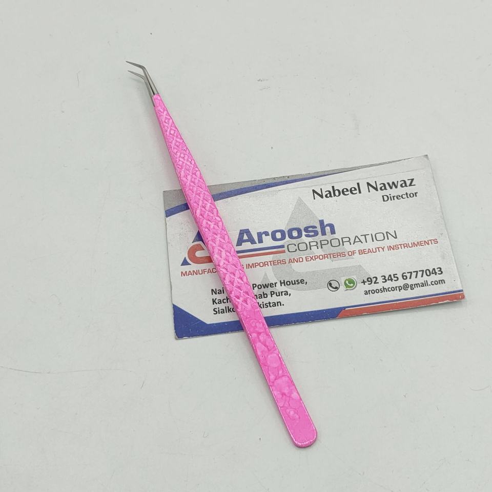 แหนบต่อขนตาแบบด้ามจับเพชรทำจากสแตนเลส45องศาสำหรับคิ้วสีชมพูขายส่ง