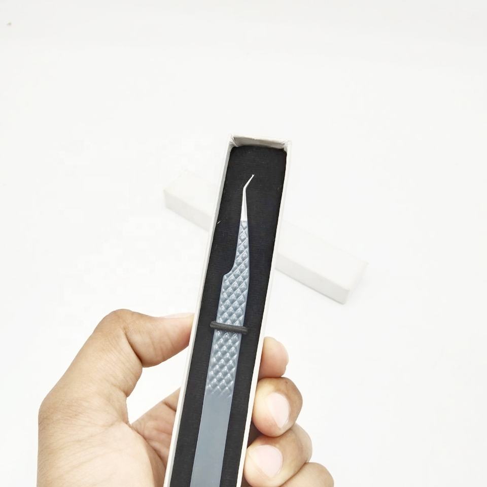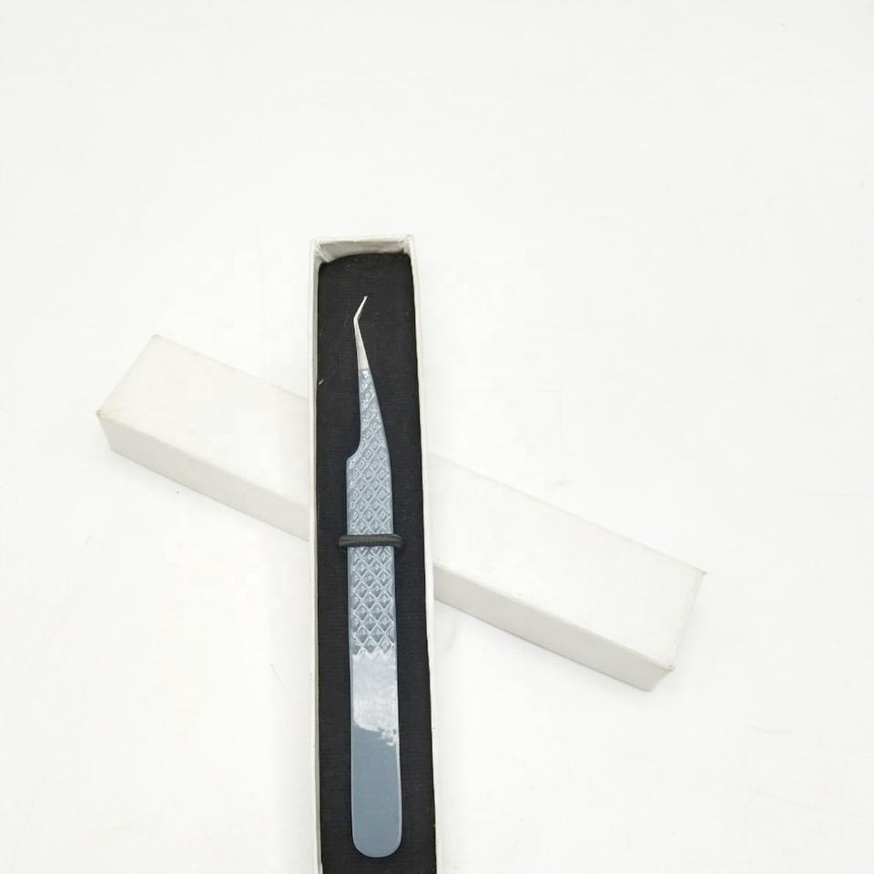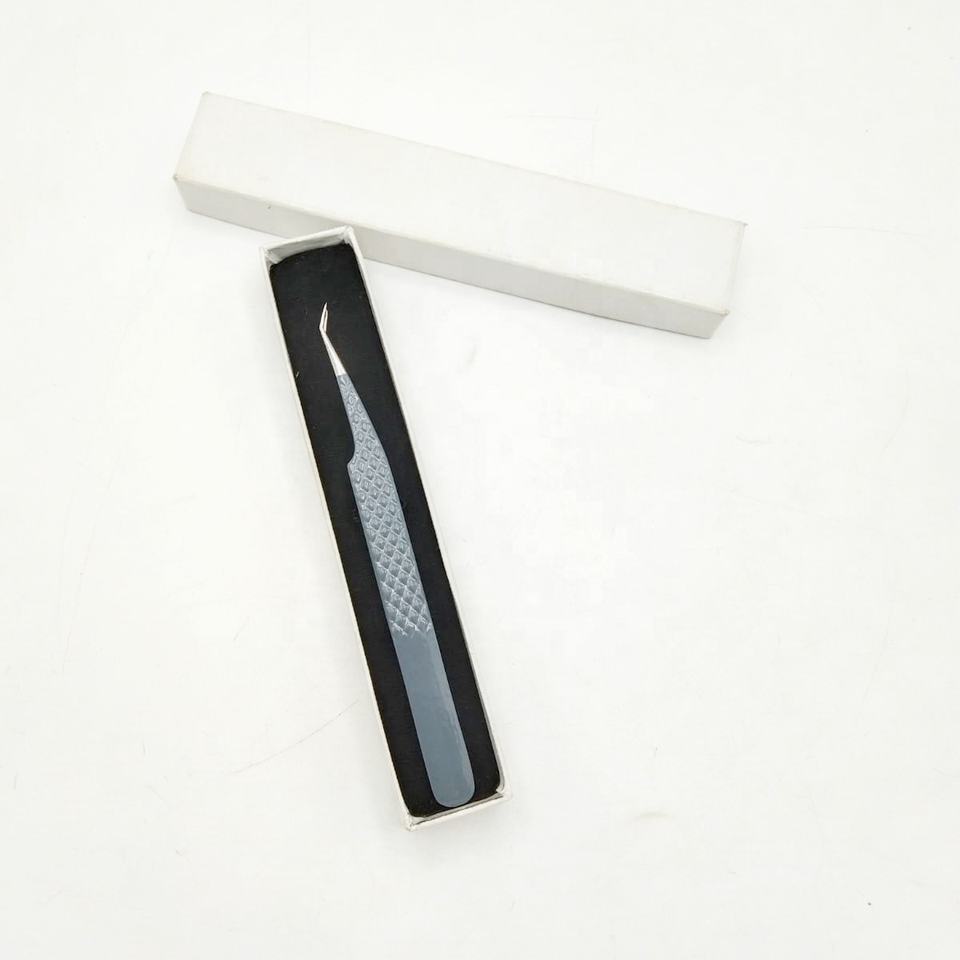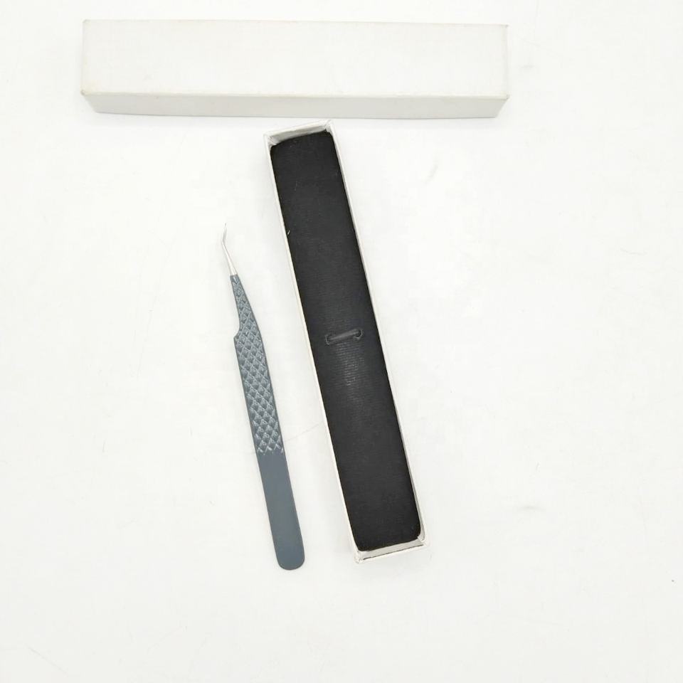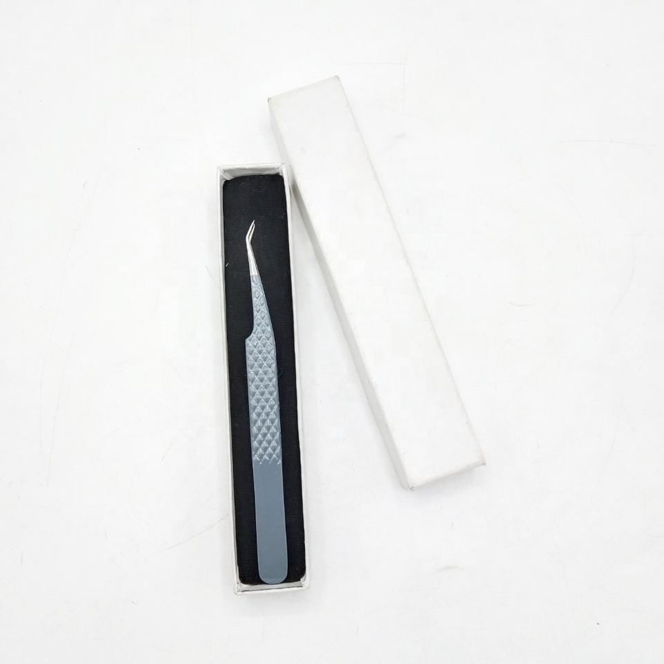 แหนบเคลือบผงสีเทาเข้มปลายเงา45องศาที่แข็งแกร่งที่หนีบขนตาอย่างยั่งยืนสแตนเลสโลโก้ส่วนตัว