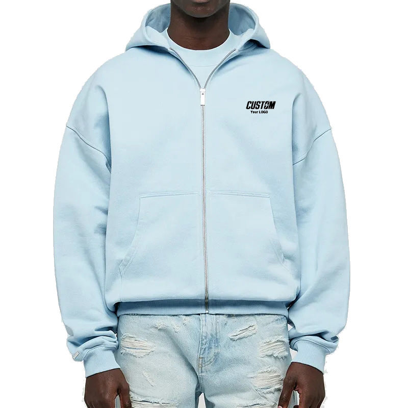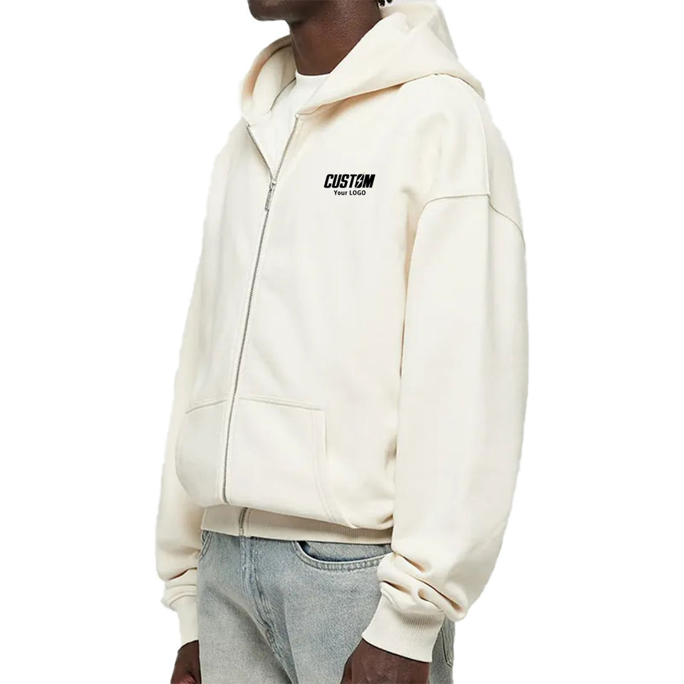 เสื้อฮู้ดมีซิปสำหรับผู้ชายโอเวอร์ไซส์ทำจากผ้าฝ้ายปรับแต่งได้เปิดไหล่ได้450แกรมเสื้อครอป