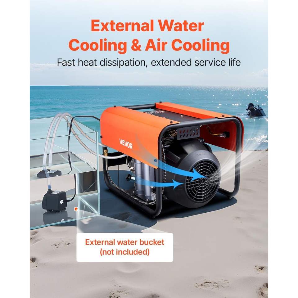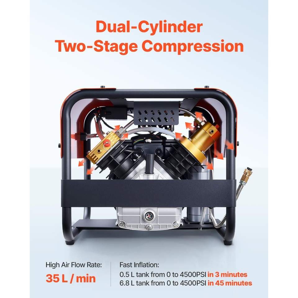 เครื่องอัดอากาศสำหรับดำน้ำแบบ PCP 4500PSI/30Mpa สำหรับถังดำน้ำแบบสกูบา แบบสองกระบอกสูบ พร้อมระบบหยุดอัตโนมัติ ติดตั้งภายนอก