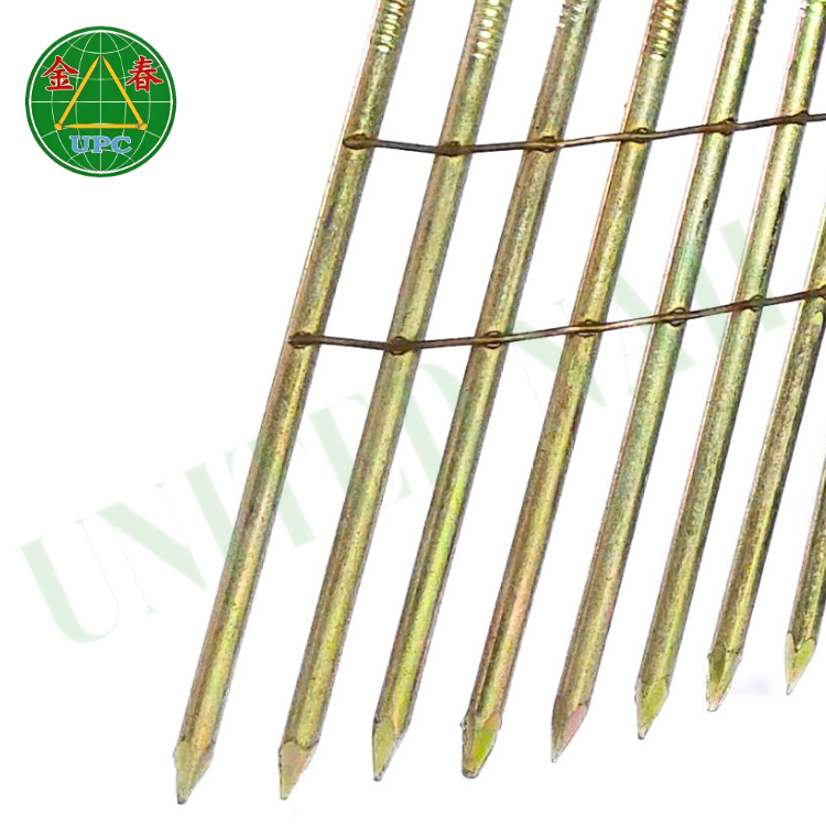 ตะปูม้วนลวดขนาด2-1/2นิ้ว4500ชิ้นสำหรับเครื่องตอกขดลวดนิวเมติกเหล็กคุณภาพสูงเคลือบสีเหลืองก้านเรียบ