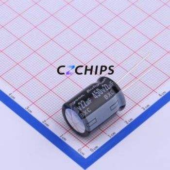 ตัวเก็บประจุแบบอิเล็กโทรไลต์อะลูมิเนียมแบบ Through-Hole รุ่น 450BXC22MEFC16X20 ขนาด D16xL20 มม. 22uF 20% 450V ขา 7.5 มม.