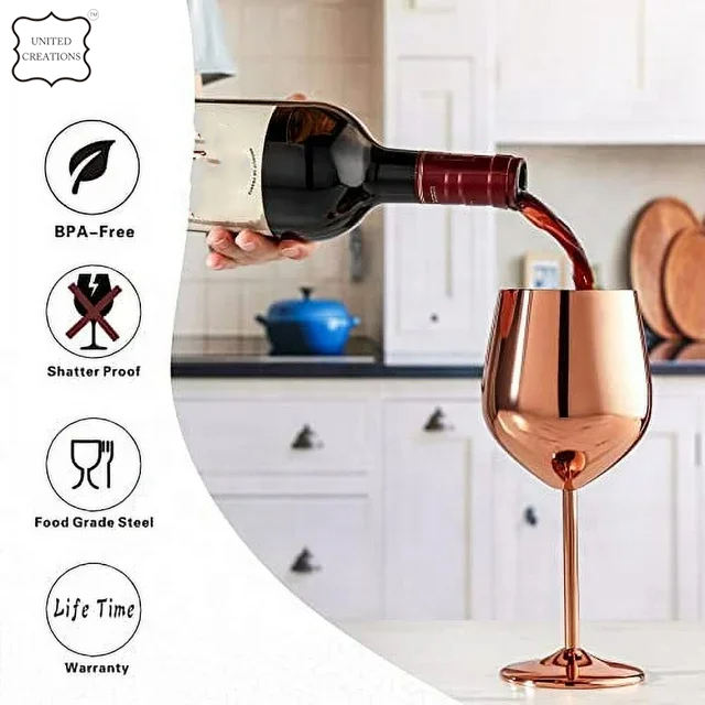 แก้วไวน์แดงสแตนเลสชุบทองแดงขนาด450มล. หรูหราสำหรับแก้วแชมเปญสำหรับการเพลิดเพลินกับไวน์ที่โปรดปรานของคุณ