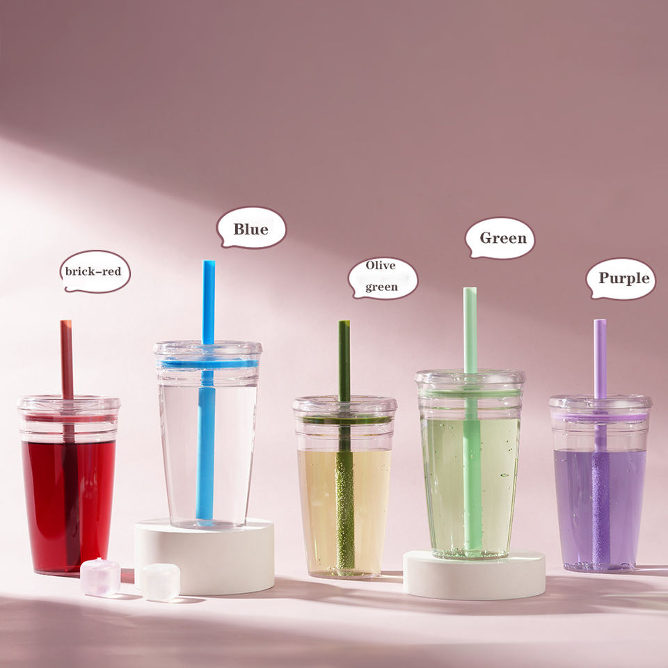 ขวดน้ำพลาสติกขนาด450มล. แก้วทัมเบลอร์พลาสติกพร้อมฝาขวดน้ำใสสำหรับกาแฟเย็น