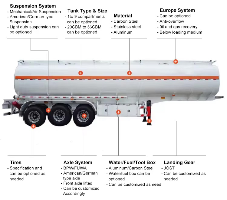 รถบรรทุกน้ำมัน45CBM รถกึ่งพ่วงรถเทรลเลอร์บรรทุกสินค้าเหลวขนส่งน้ำมันเบนซิน/ดีเซล