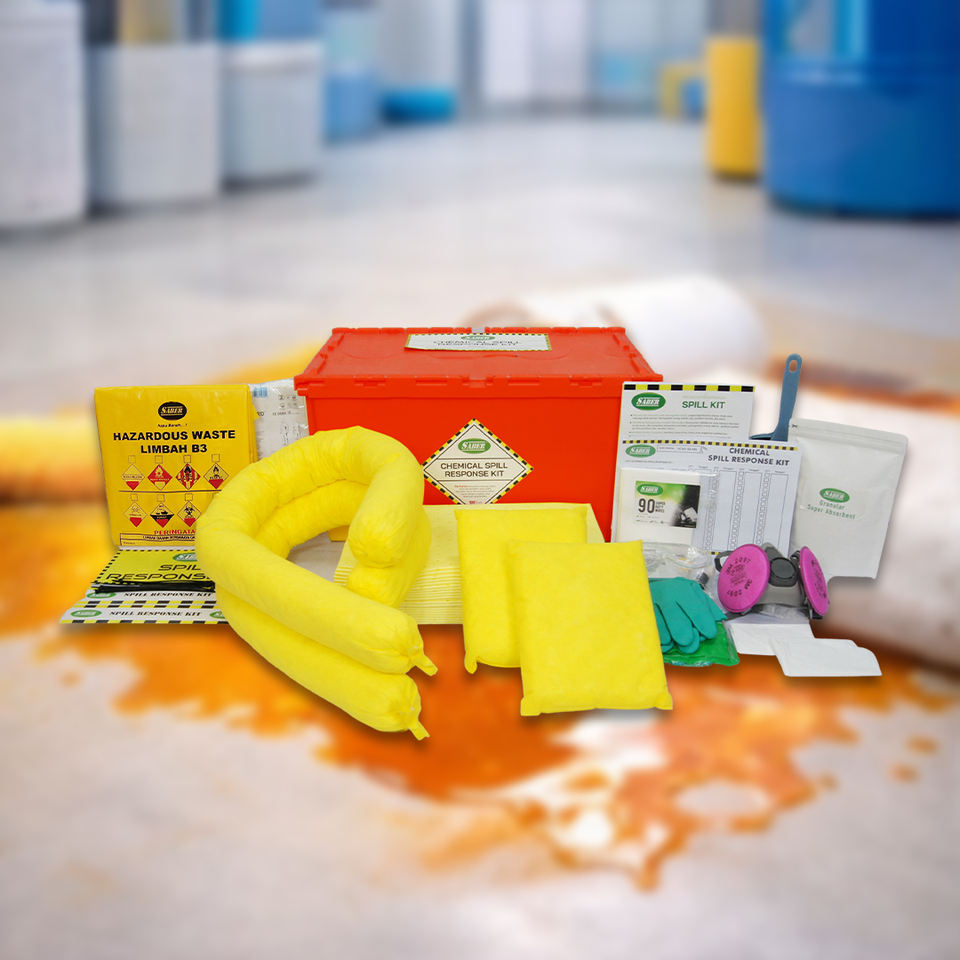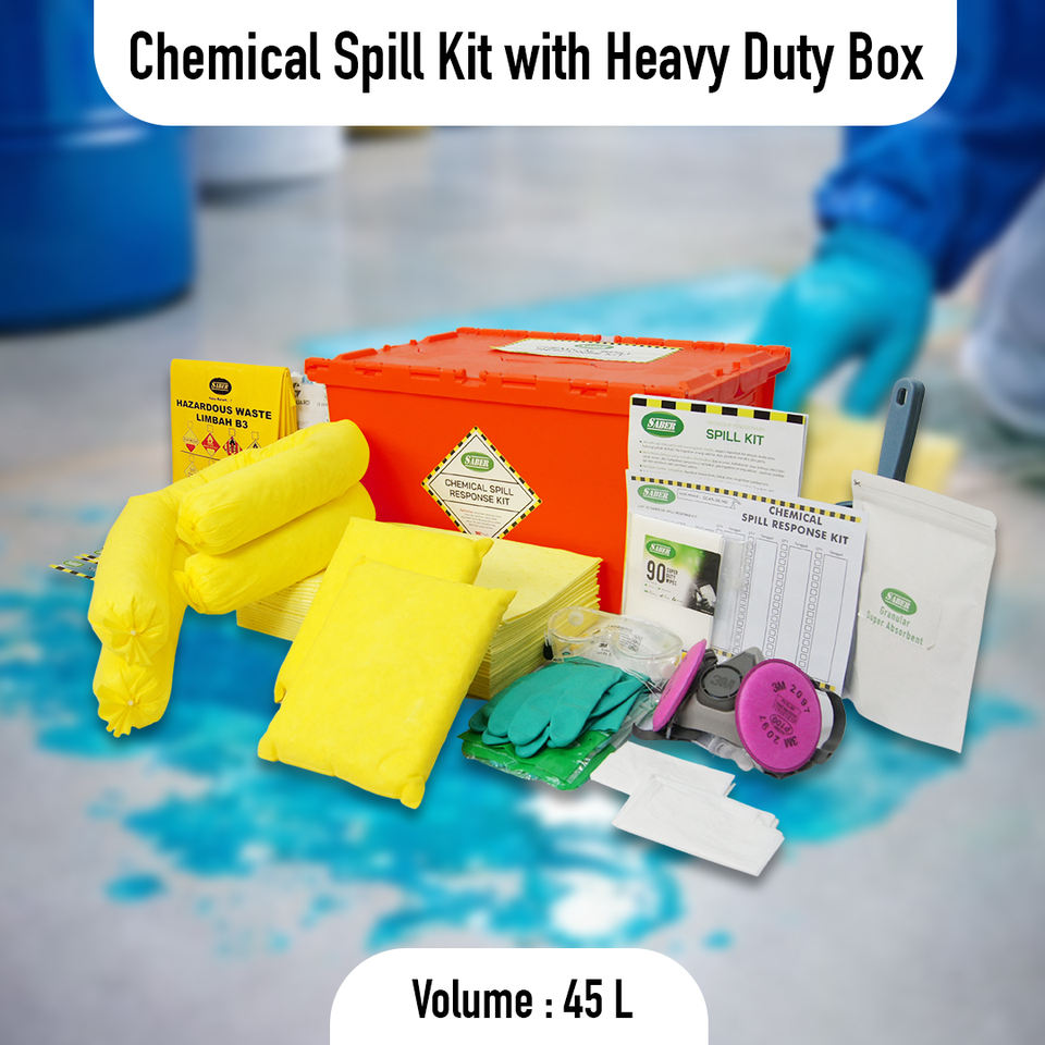 ชุดอุปกรณ์รับมือสารเคมีรั่วไหลขนาด 45 ลิตร พร้อมกล่องแบบพกพาสำหรับงานหนัก ชุดอุปกรณ์ดูดซับสารเคมีพร้อมแผ่นดูดซับ สำหรับใช้ในอุตสาหกรรมและห้องปฏิบัติการ