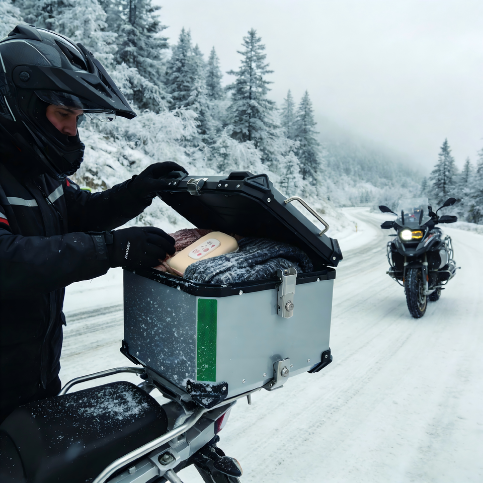 ตัวเลือกปริมาณ:45 ลิตร แบบมาตรฐาน, 25-100 ลิตร แบบสั่งทำพิเศษ, MOQ 50, กล่องท้ายรถมอเตอร์ไซค์
