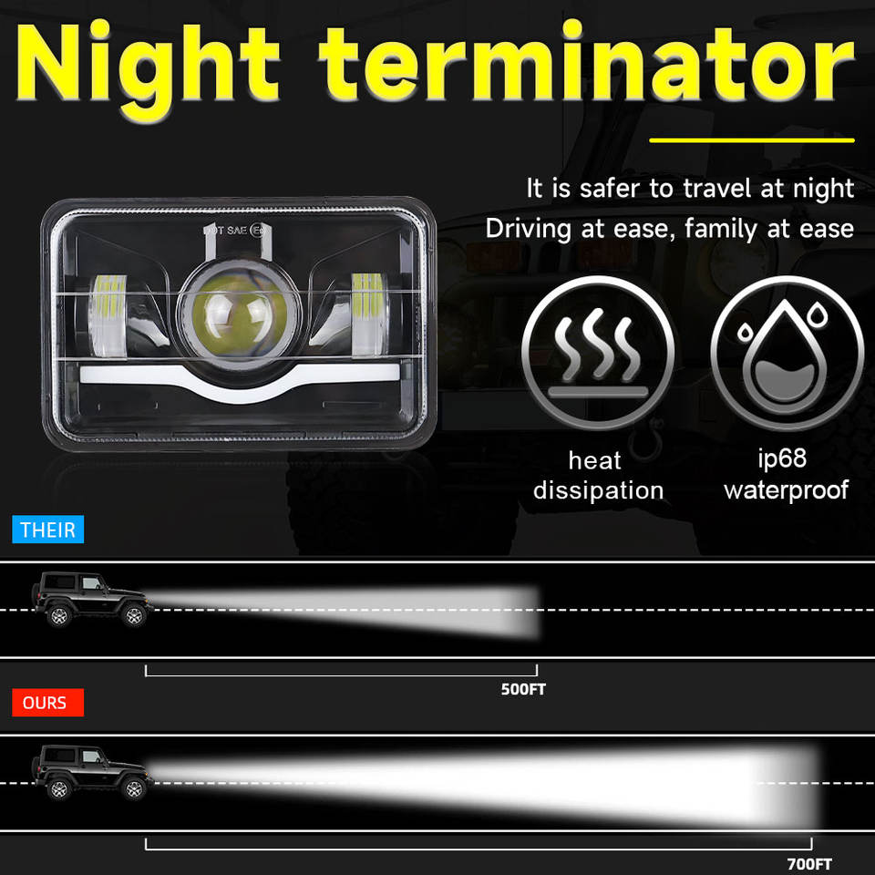 หลอดไฟ LED ทรงสี่เหลี่ยมขนาด 4x6 นิ้ว 45W H4 12V 10000 ลูเมนส์ 6000K ความสว่างสูง สำหรับรถยนต์ รถจี๊ป รถบรรทุกทั่วไป