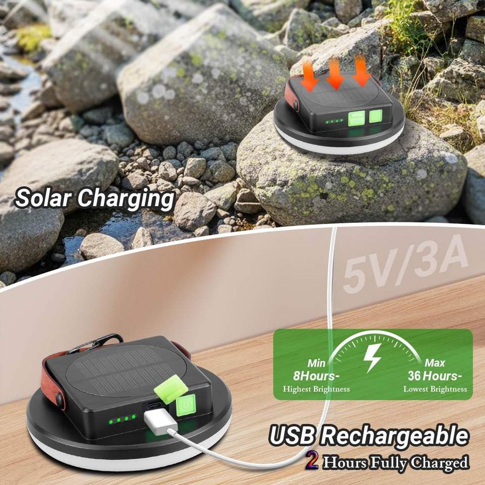 ไฟแคมป์ปิ้งพลังงานแสงอาทิตย์ความสว่างสูง 45W 4000LM LED IP66 กันน้ำ ชาร์จไฟได้ ใช้แขวนในเต็นท์ ใช้ในกรณีไฟดับฉุกเฉิน