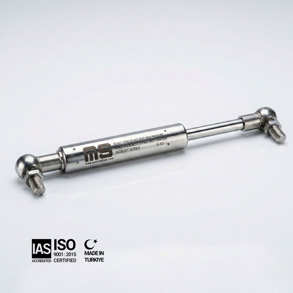 กระบอกยกฝาปิดอุตสาหกรรมขนาด 45 ซม. กระบอกสูบยกขนาด 17 นิ้ว วัสดุสแตนเลส AISI316L ระยะชัก 200 มม. รับน้ำหนัก 1250 นิวตัน