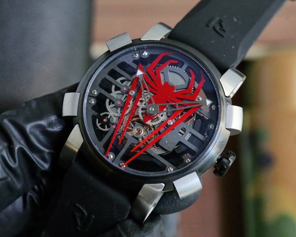 นาฬิกากลไกจักรกลอัตโนมัติเรืองแสงขนาด45มม. ดีไซน์กลวงเคสหน้าปัดไทเทเนียม Tourbillon สายรัดยางกระจกคริสตัล