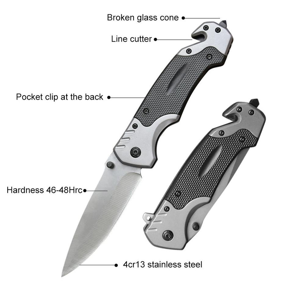 มีดพับสแตนเลส 4cr13 ความแข็ง 46-48Hrc พร้อมที่ตัดกระจกและเชือก พร้อมคลิปหนีบกระเป๋า สำหรับตั้งแคมป์ EDC กิจกรรมกลางแจ้ง