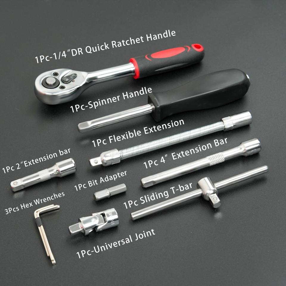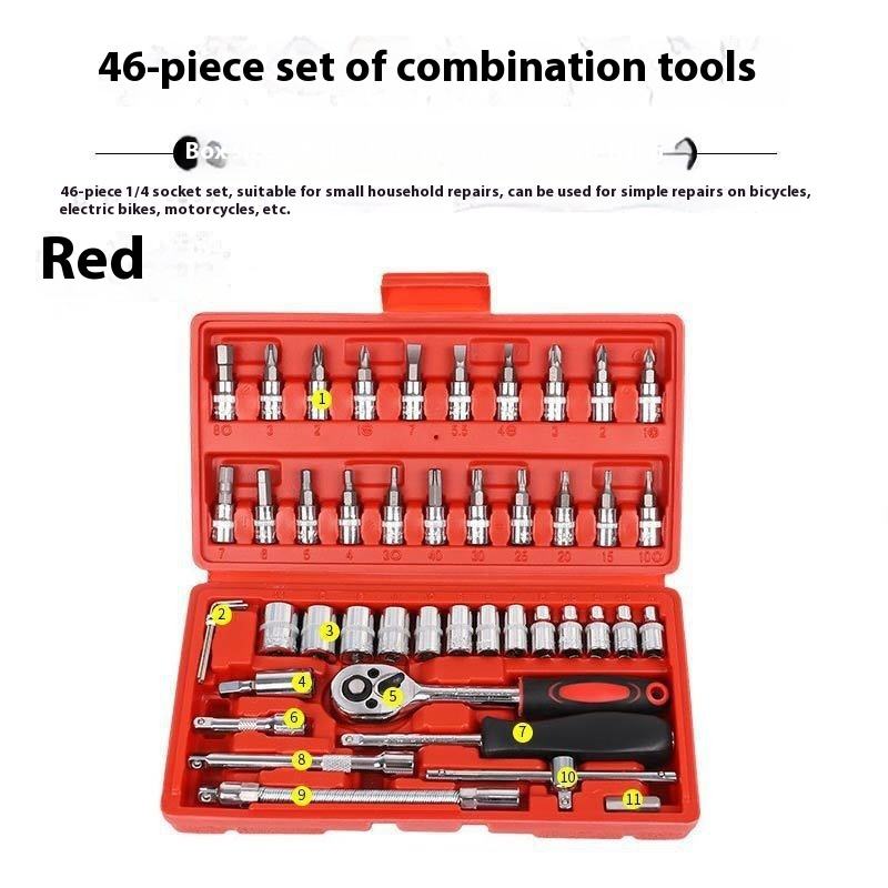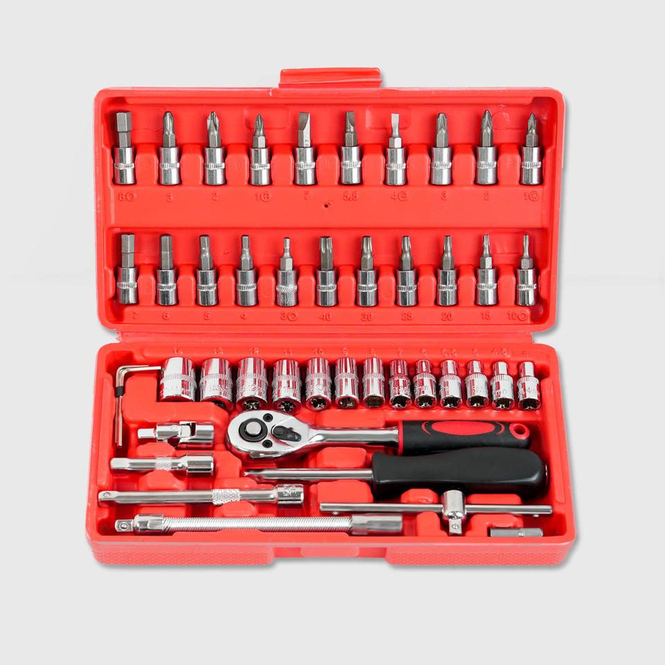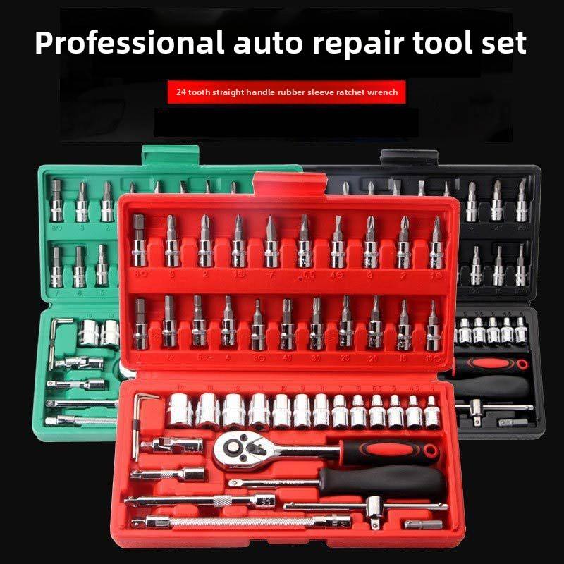 ชุดประแจวงล้อ46ชิ้นกล่องเครื่องมือซ่อมรถยนต์ชุดเครื่องมือประแจซ็อกเก็ตสำหรับรถจักรยานยนต์รถยนต์