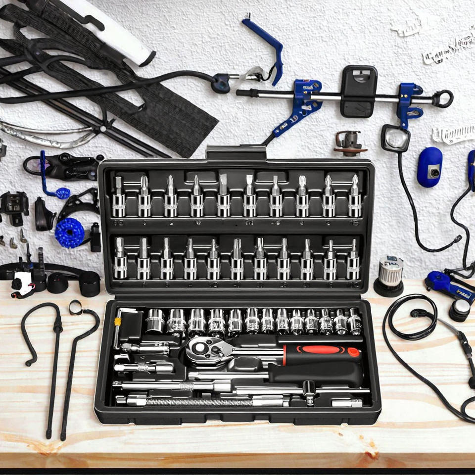 ชุดเครื่องมือซ่อมรถยนต์ 46 ชิ้น พร้อมกล่องเครื่องมือประแจวงล้อ ชุดประแจบล็อกครบชุด สำหรับการบำรุงรักษารถยนต์ ซ่อมแซมเครื่องยนต์