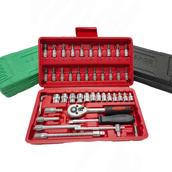 ชุดเครื่องมือซ่อมรถยนต์ 46 ชิ้น พร้อมกล่องเครื่องมือ ประแจวงล้อ ชุดบล็อก สำหรับซ่อมบำรุงรถยนต์ ซ่อมแซมเครื่องกล บริการซ่อมรถยนต์