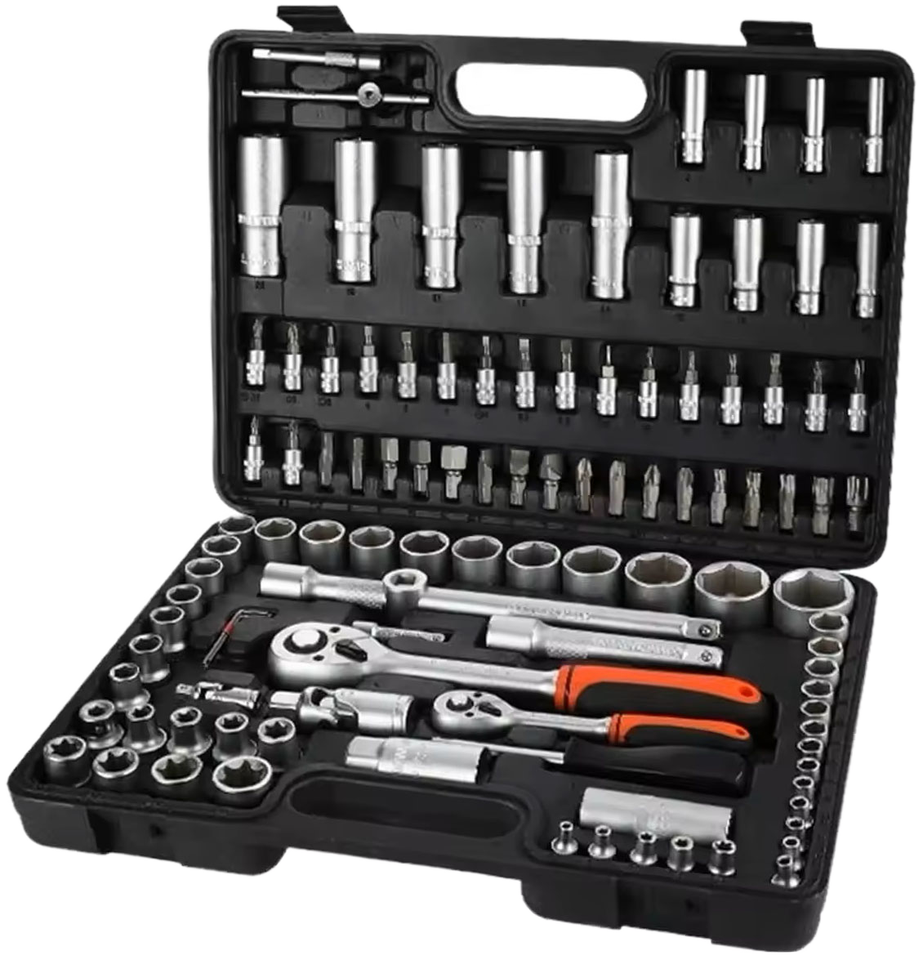 ชุดเครื่องมือซ่อมแซมรถยนต์และของใช้ในบ้าน 46 ชิ้น ทำจากเหล็กกล้าคาร์บอน พร้อมกล่องเก็บแข็งแรง ประกอบด้วยประแจและซ็อกเก็ต