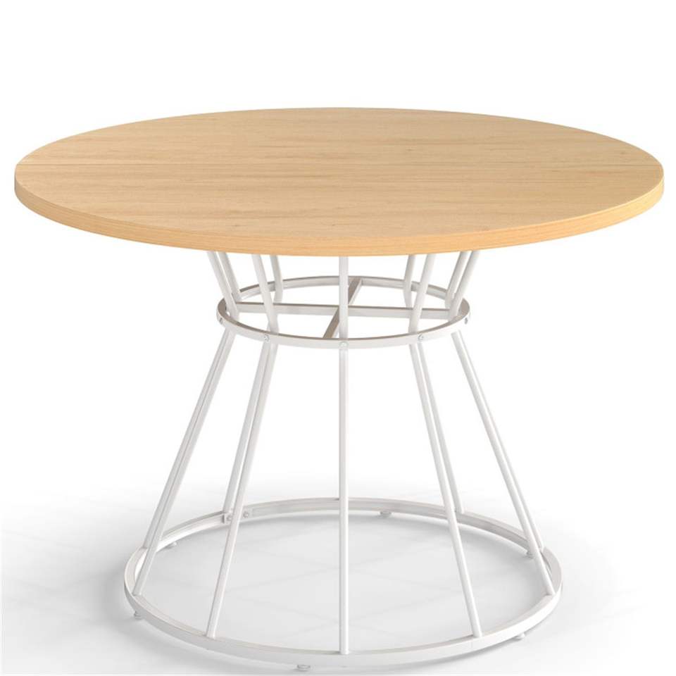 โต๊ะรับประทานอาหารทรงกลมขนาด 47 นิ้ว สำหรับ 4-6 คน ขนาดครอบครัว พร้อมฐานโลหะทรงนาฬิกาทรายและท็อปโต๊ะโค้ง รุ่น D0100XF98PV