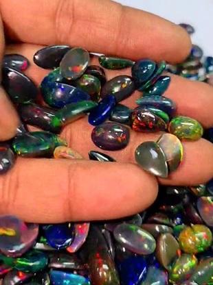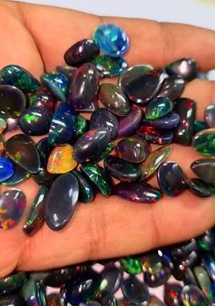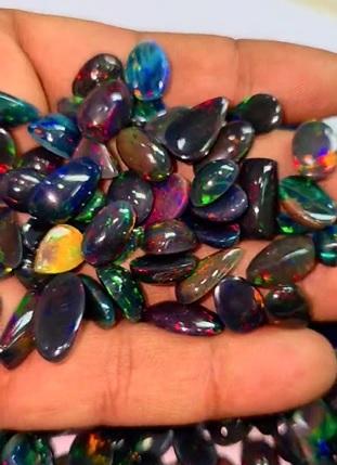 ชื่อสินค้า:โอปอลดำเอธิโอเปียธรรมชาติ ขนาดฟรี ทรงไข่และทรงลูกแพร์แบบคาโบชอง