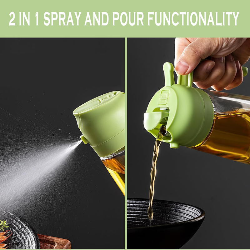 ขวดสเปรย์น้ำมันมะกอก 2-in-1 สำหรับห้องครัว ขวดแก้วพร้อมหัวฉีดสเปรย์
