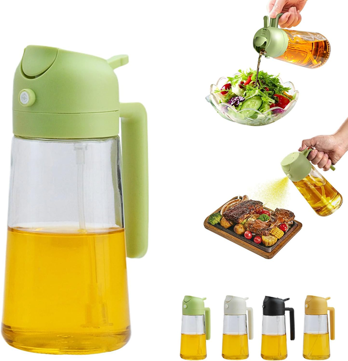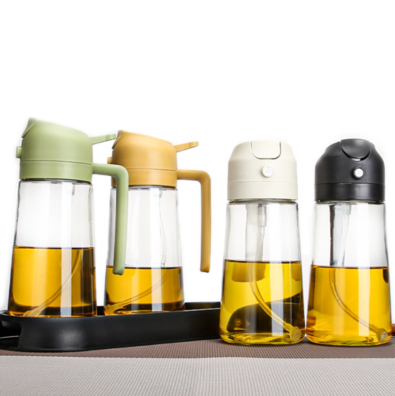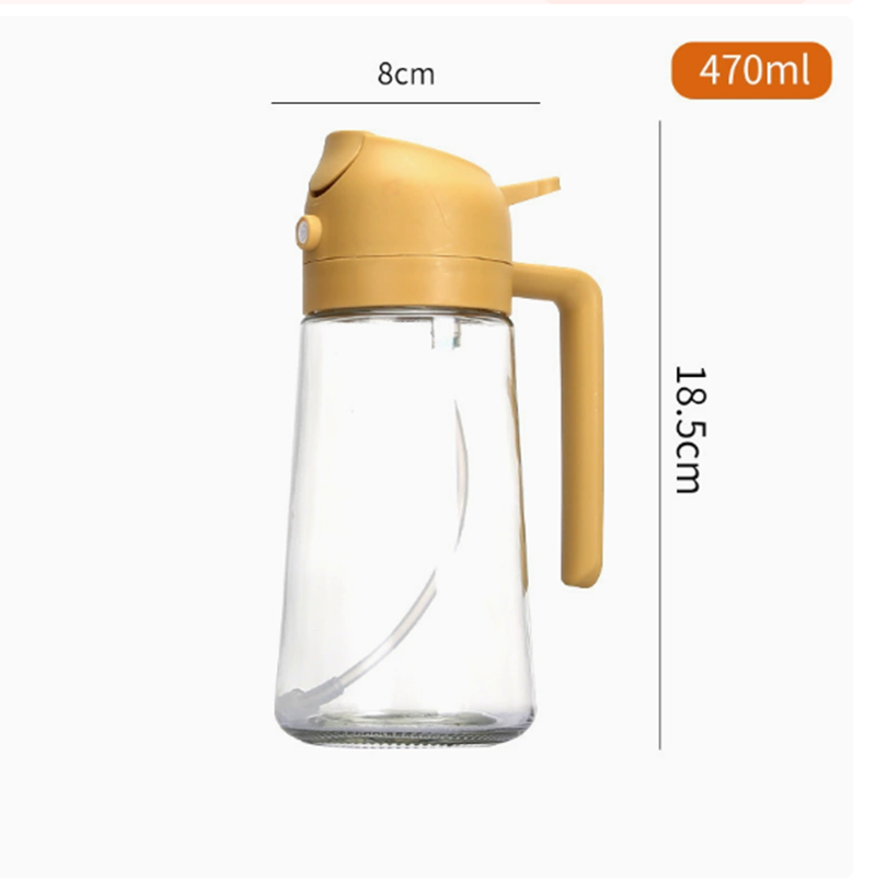ขวดสเปรย์น้ำมันทำอาหาร 2 in 1 ขนาด 470 มล. สำหรับครัว ขวดแก้วแบบพ่น 2 in 1 ป้องกันการรั่วซึม ใช้กับหม้อทอดไร้น้ำมันได้