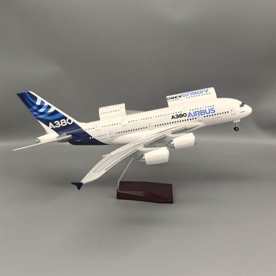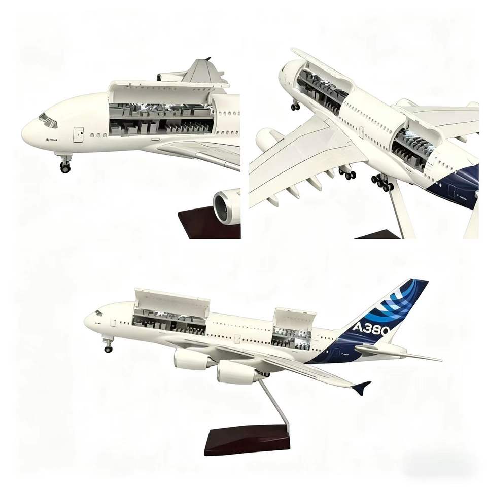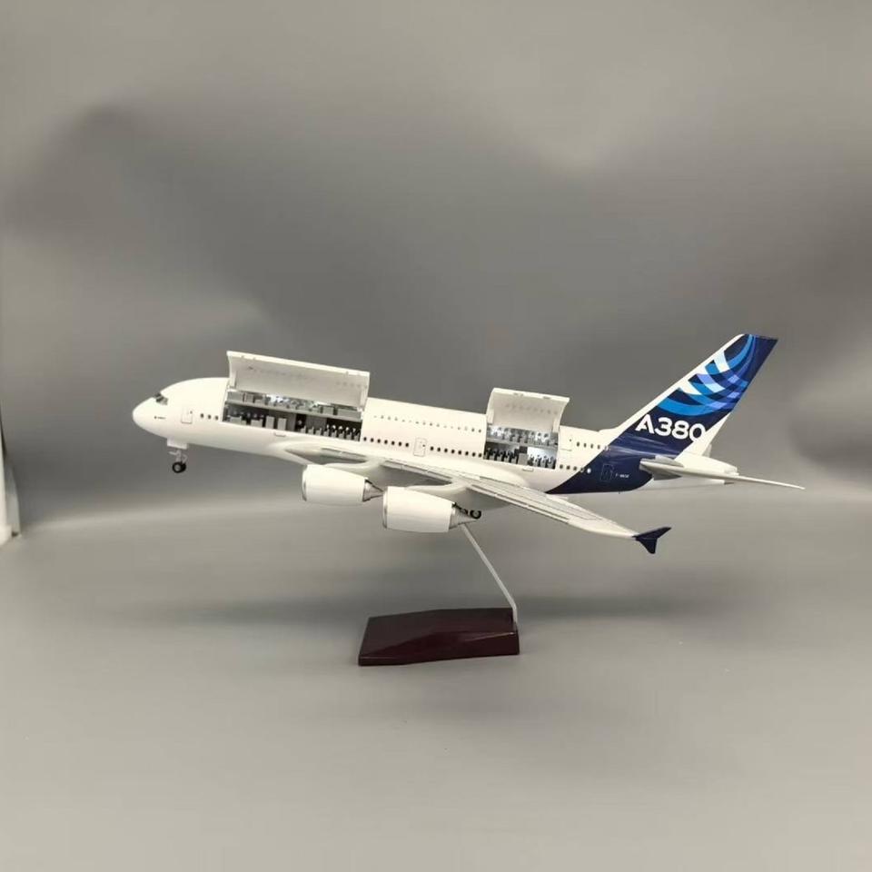 ไฟ LED ต้นแบบ A380 47ซม. โมเดลเครื่องบินแอร์บัสเรซินมาใหม่พร้อมประตูเปิดใช้งานมุมมองภายในสำหรับเป็นของขวัญ