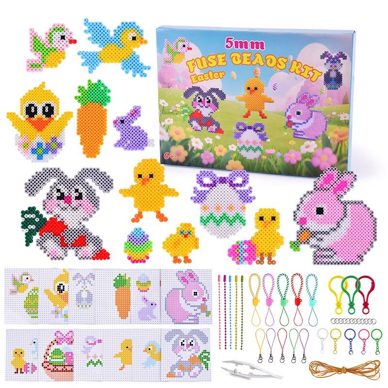 ลูกปัดหลากสี 48 สี 2 กล่อง จำนวนมาก ชุดทำลูกปัดรูปกระต่ายอีสเตอร์ ขนาด 5 มม. ชุดอุปกรณ์การเรียนรู้ 12 แบบ สำหรับเด็กชายและเด็กหญิงอายุ 5-7 ปี