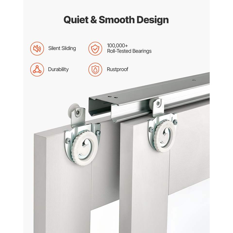 ชุดอุปกรณ์ฮาร์ดแวร์ประตูตู้เสื้อผ้าบานเลื่อนแบบกระจกฝ้า 5 ช่อง ขนาด 48 นิ้ว คู่กับบานเลื่อนขนาด 25 นิ้ว พร้อมรางเลื่อนแบบติดพื้นแข็งแรง สำหรับประตูบานเลื่อนขนาด 80 นิ้ว