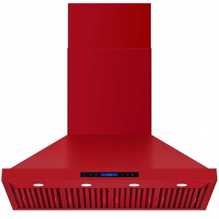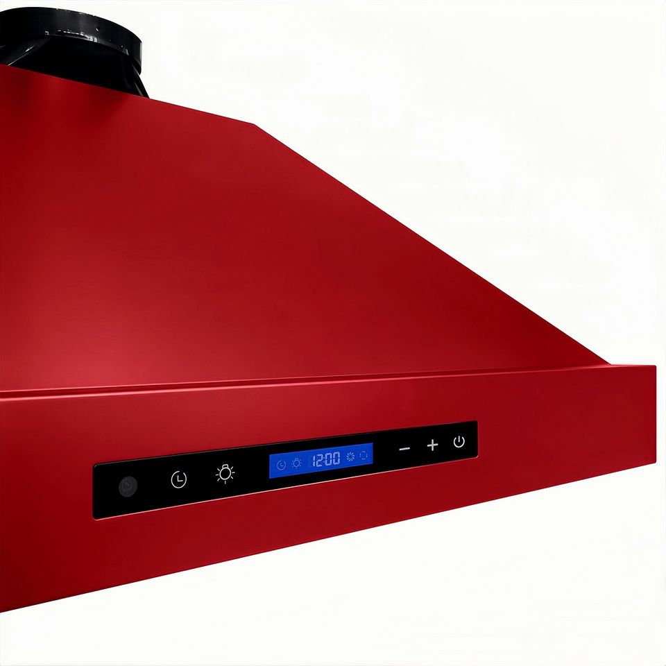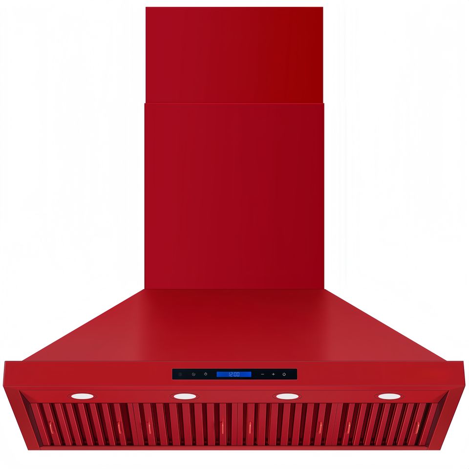 เครื่องดูดควันเชิงพาณิชย์ขนาด 48 นิ้ว 2000 ลูกบาศก์เมตร/ชั่วโมง, ระบบกรองแบบแผ่นกรอง, รีโมทคอนโทรล, 3 ระดับความเร็ว, ระบบปิดเครื่องแบบหน่วงเวลา พร้อมตัวเครื่องสแตนเลสสีแดง
