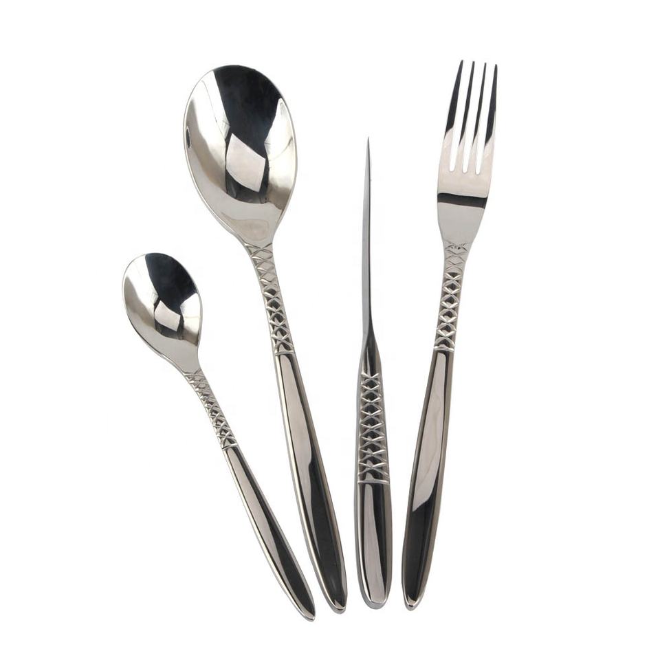 ชุดเครื่องเงินแบบแบน48ชิ้นสำหรับ12คนชุดช้อนส้อมสแตนเลส