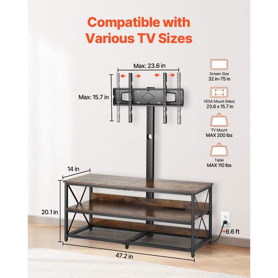 ขาตั้งทีวีขนาด 48 นิ้ว พร้อมที่ยึดสำหรับทีวีขนาด 75 นิ้ว ตู้วางทีวีพร้อมปลั๊กไฟ ปรับความสูงได้ คอนโซลแบบตั้งพื้นสำหรับทีวี