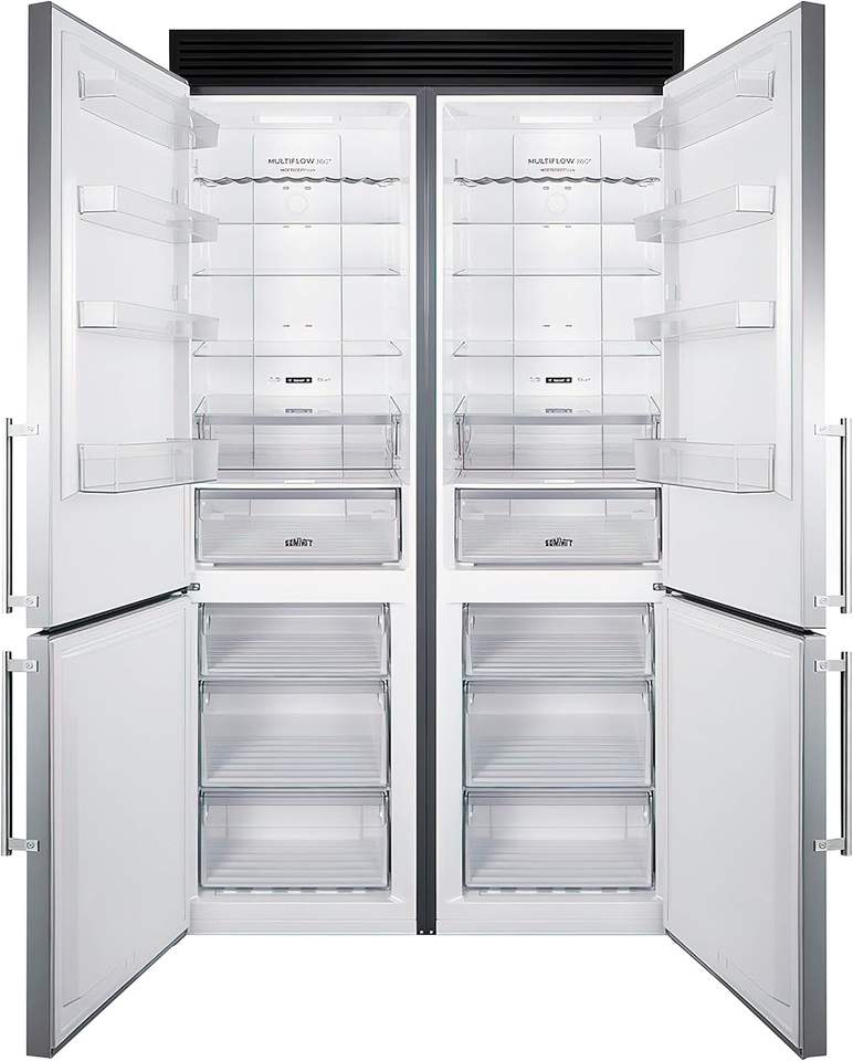 ตู้เย็นสแตนเลสแบบ 4 ประตู ขนาด 48 นิ้ว พร้อมชุดเตาย่าง ความจุ 23.4 คิว ชั้นวางกระจกปรับได้ ระบบโนฟรอสต์