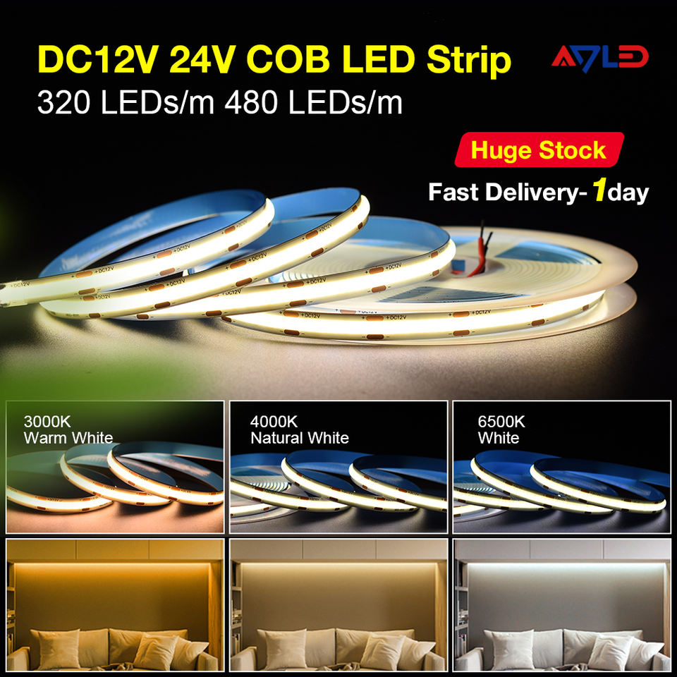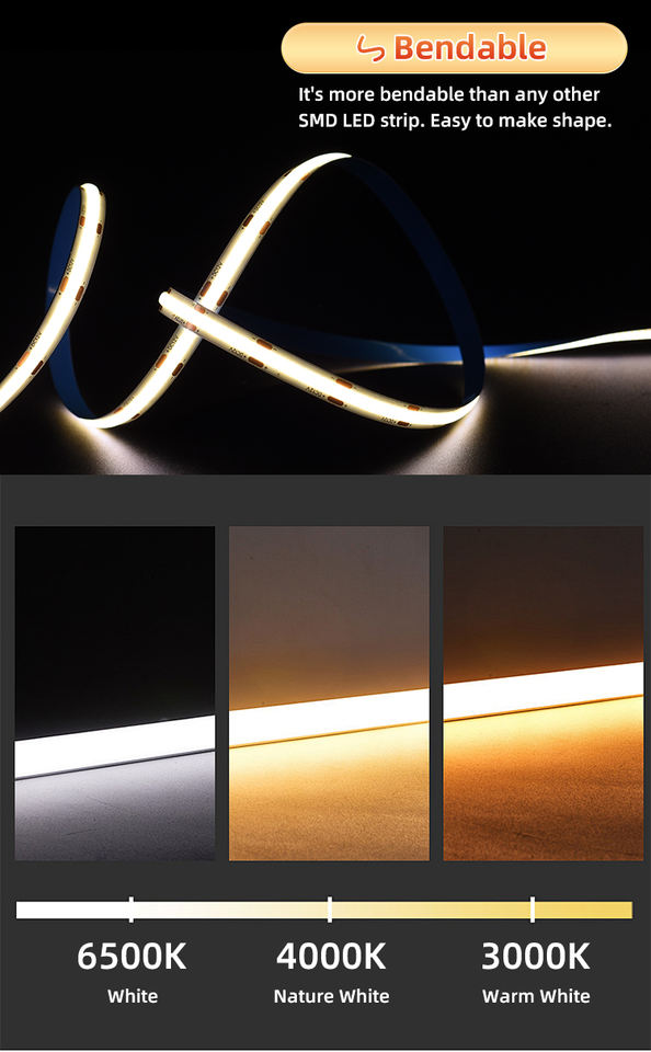 แถบไฟ LED COB แบบม้วนต่อม้วน 480 ดวง/เมตร