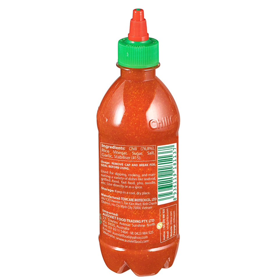 ส่วนผสม:Chili (76.8%), garlic, rice vinegar, salt, sugar