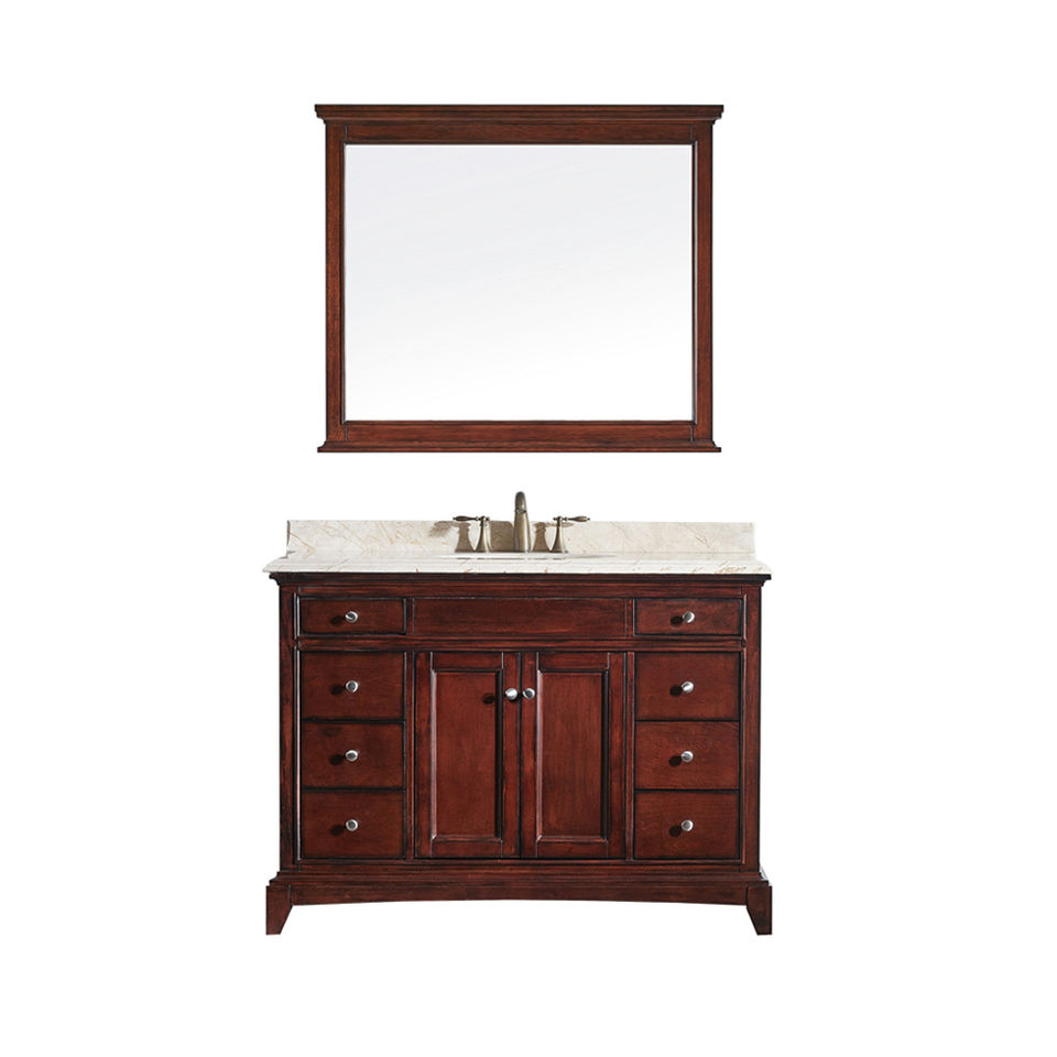 ตู้ห้องน้ำแบบทรานซิชั่นขนาด 48 นิ้ว พร้อมกระจกไม้และดีไซน์กันน้ำ โครงสร้างแข็งแรง ทนทาน อ่างล้างหน้าเดี่ยว ผลิตในเวียดนาม