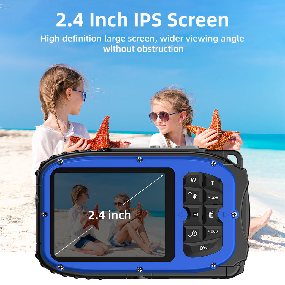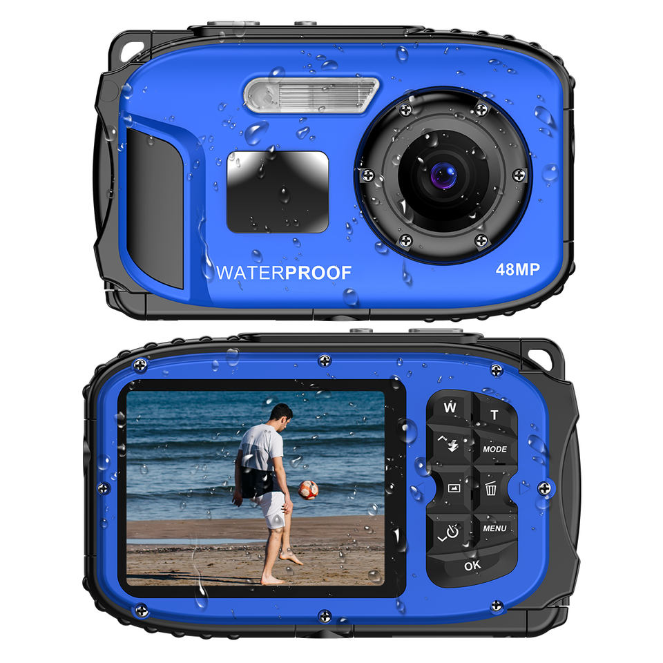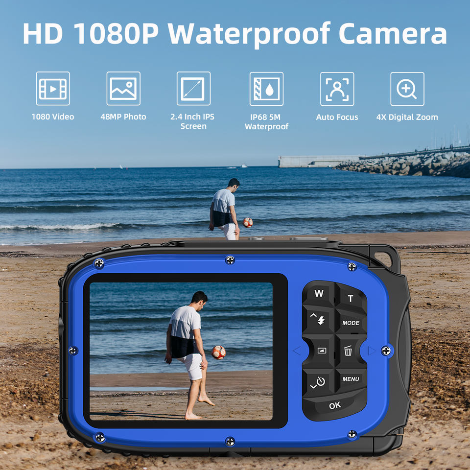 กล้องถ่ายใต้น้ำ 48MP Retro HD 1080P กันน้ำ หน้าจอ 2.4 นิ้ว IP68 กันน้ำลึก 5 เมตร โฟกัสอัตโนมัติ ซูมดิจิตอล 4 เท่า สำหรับดำน้ำ
